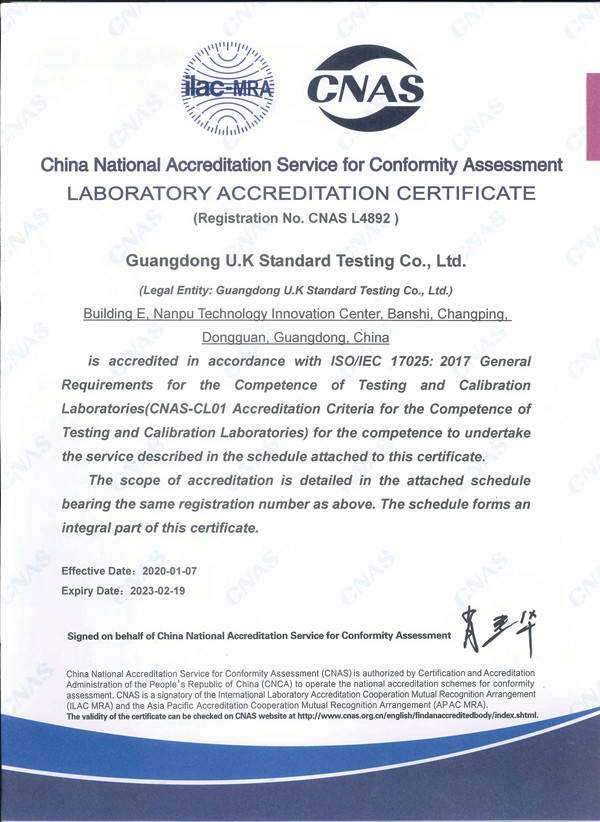 1. CNAS national laboratory accreditation indicates that the laboratory has the technical capability of testing or calibration, and has been recognized by laboratory accreditation institutions in more than 40 countries and regions in the mutual recognition agreement.